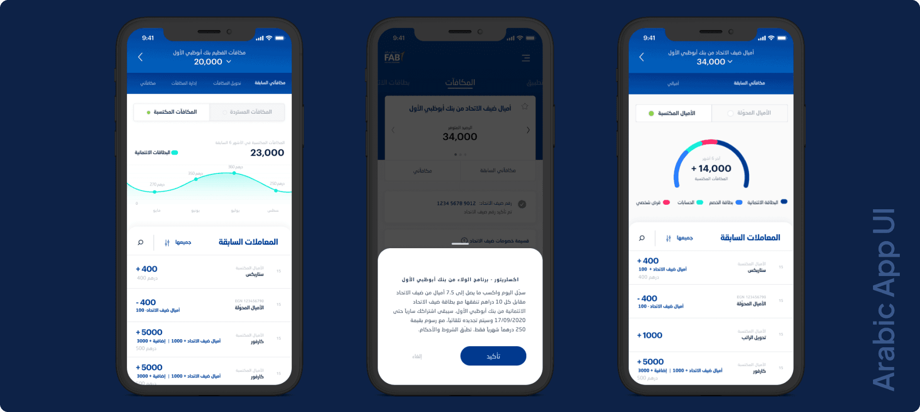 I localized the existing English mobile banking app into Arabic, redesigning components to accommodate right-to-left behavior and Arabic typographic nuances.