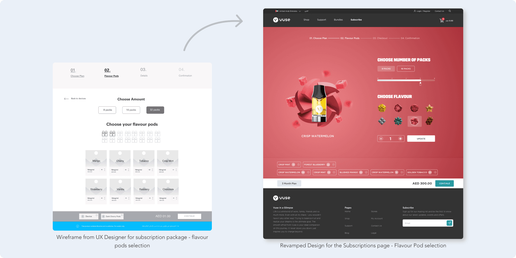 Instead of static white backgrounds, pages incorporated color transitions tied to flavour families and device variants making exploration feel immersive rather than transactional.